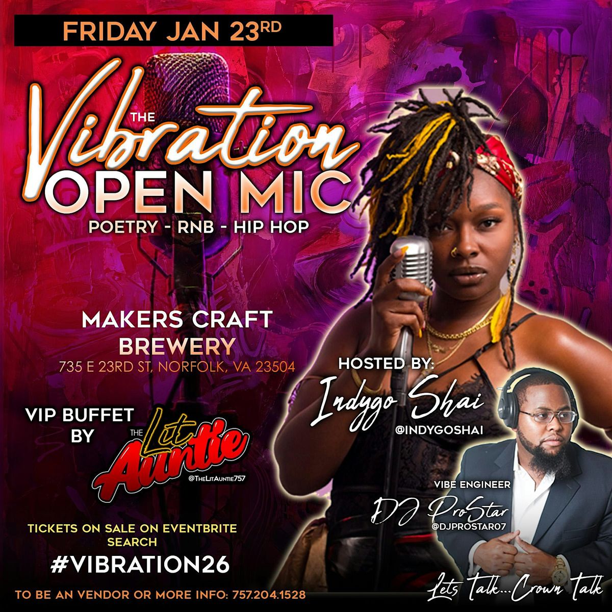 Join us for an electrifying evening of spoken word and soulful expression at Makers Craft Brewery! Get ready to be blown away by the power of words as poets from all walks of life come together to share their stories, emotions, and experiences. Hosted by Indygo Shai (@indygoshai) and Vibe Engineer DJ ProStar (@djprostar07)