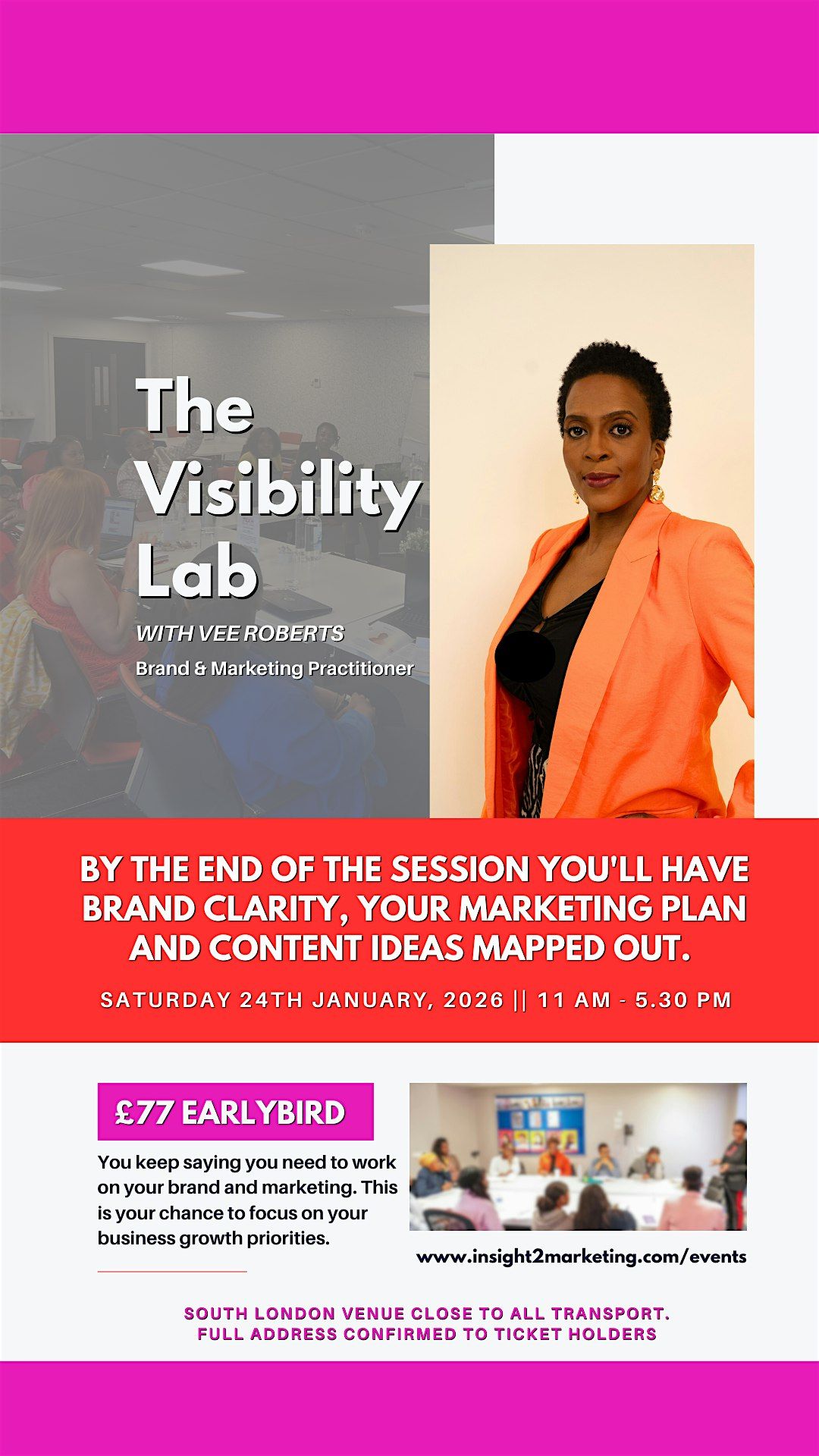 It’s an opportunity to focus on your marketing planning and a visibility accelerator designed. You will do work on the day that will help you: