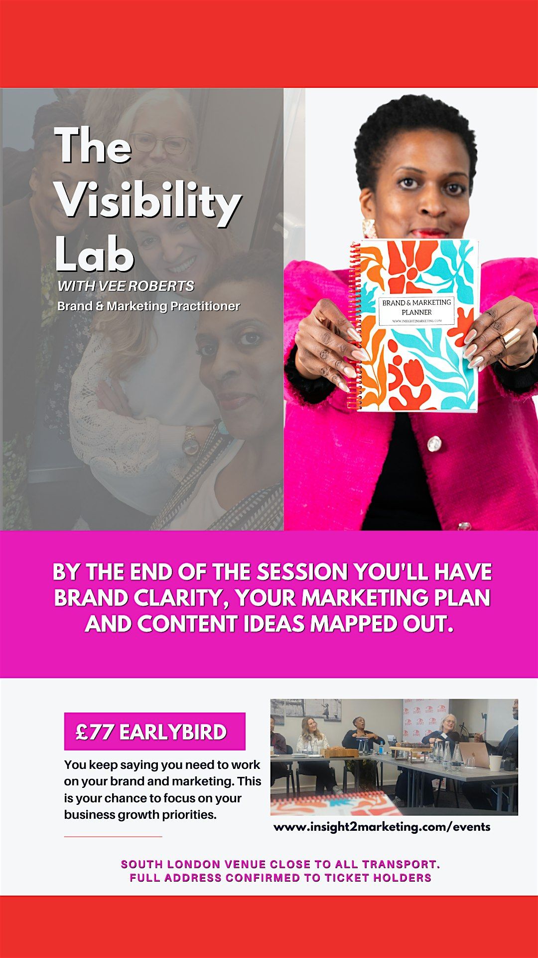 The Visibility Lab is an interactive, in-depth working day where you will review what you’re currently doing, identify what’s not working and build a clear, strategic brand and marketing plan that makes sense for your business. You will not be rushed through this process.