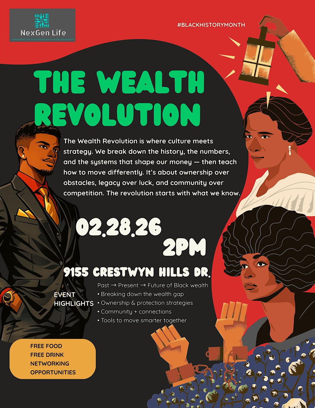 The Wealth Revolution is a free community experience designed to close the wealth gap through knowledge, ownership, and protection. We’re creating a space where our community can learn the real money playbook: how we built wealth in the past, where we stand today, and how to protect and grow what we earn moving forward.