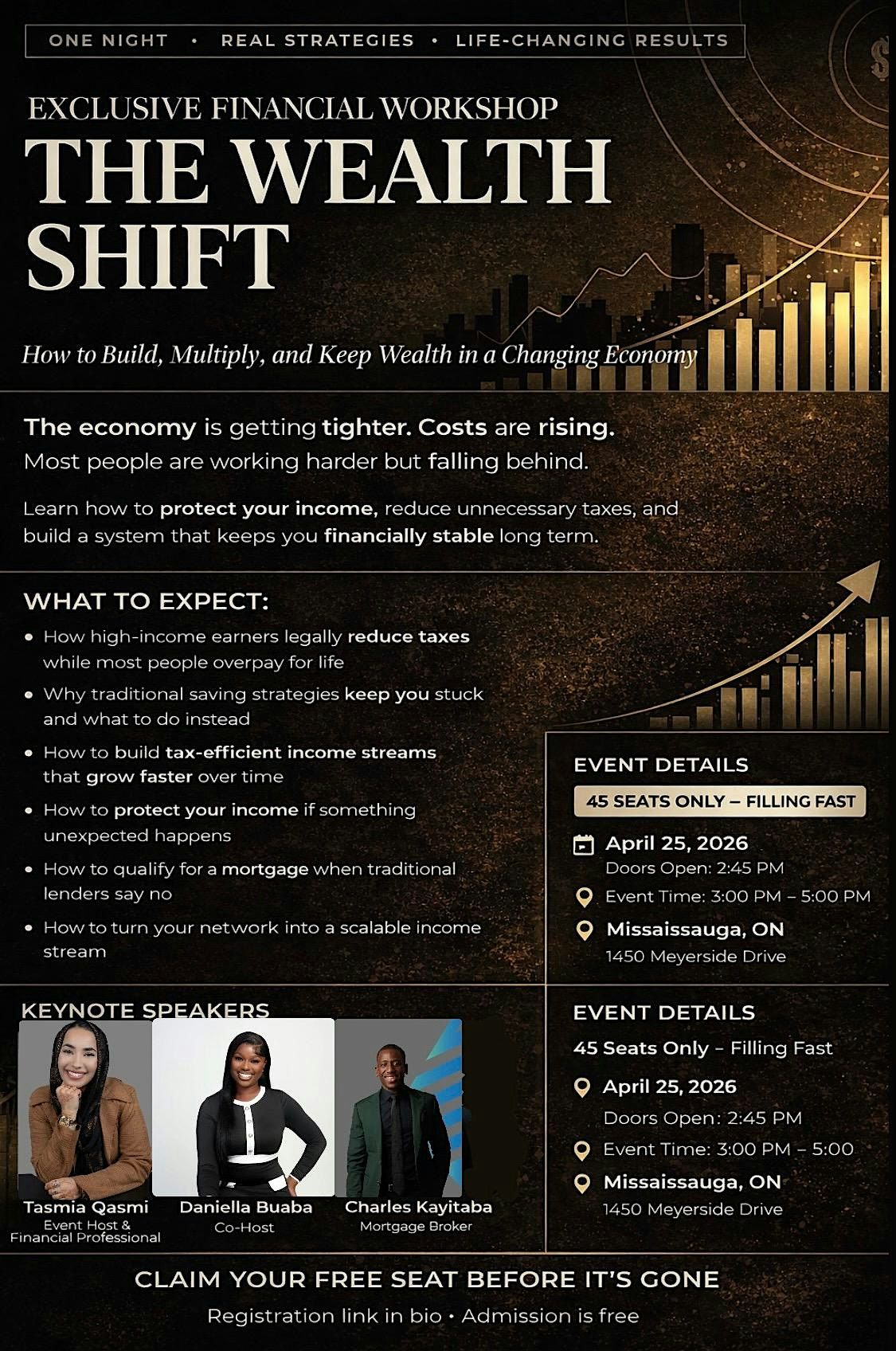The Wealth Shift is an exclusive, high-impact financial workshop designed for individuals ready to stop following outdated advice and start building real wealth. In today’s economy, working harder isn’t enough you need the right strategy.