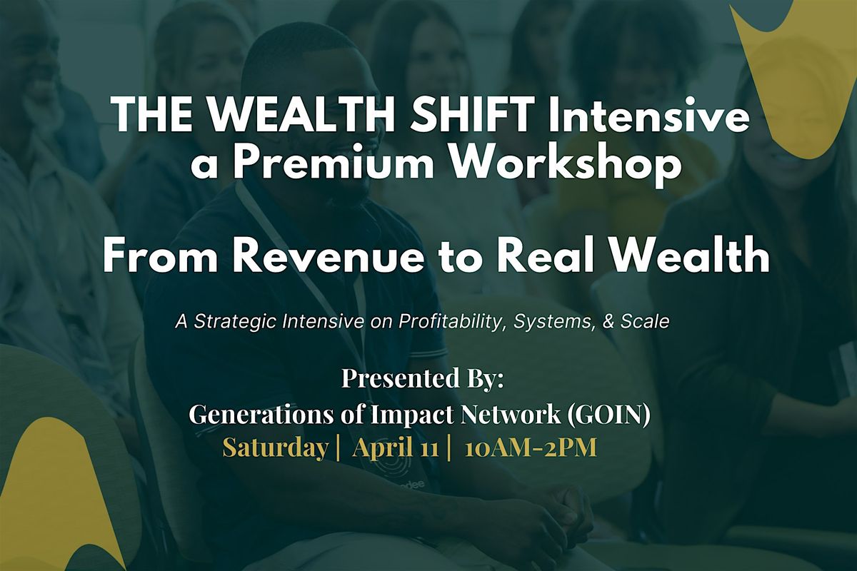 This workshop is apart of GOIN's Shift Into Wealth: Build, Grow, & Create Legacy event and Small Business Expo, THE WEALTH SHIFT: Building Businesses, Empowering Families, and Creating Generational Legacy Where mindset meets entrepreneurship and community builds wealth