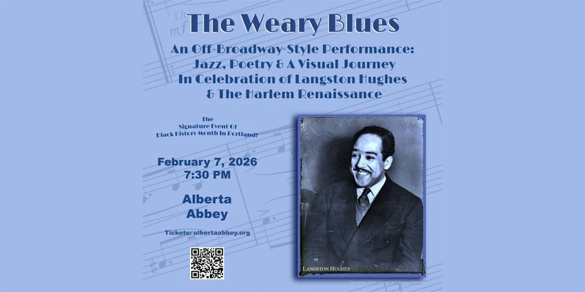 In honor of Black History Month join us for a unique multimedia tribute to Langston Hughes on the 100th anniversary of his first poetry collection, The Weary Blues. This off-Broadway-style production brings together some of Portland’s top entertainers for an evening of jazz, performance poetry, and historic visual projections.