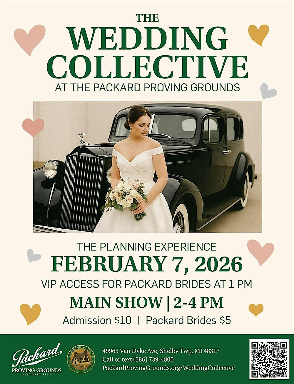 Plan your wedding in one unforgettable afternoon at The Wedding Collective, hosted inside the historic Packard Proving Grounds. Designed for couples at every stage of planning, this curated event brings together Metro Detroit’s most trusted wedding professionals in a relaxed and inspiring setting. From florals and photography to catering and coordination, discover new ideas, connect with talented vendors, and simplify your planning process — all in one beautiful location.