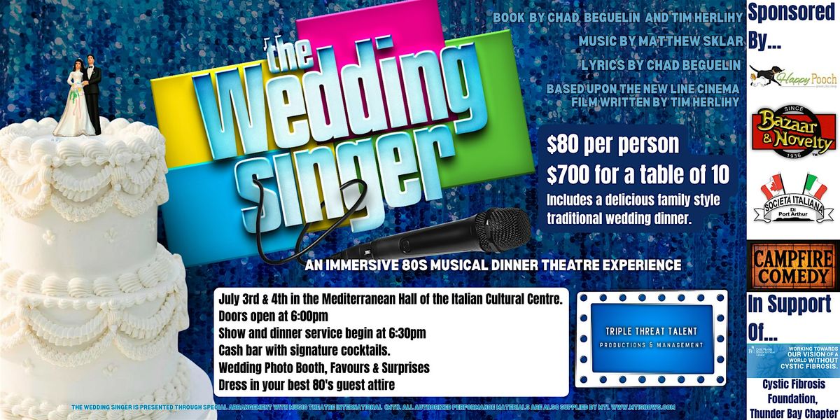 Enjoy a full, family style wedding dinner, grab a drink from the bar, and prepare for an unforgettable night of live musical theatre, outrageous comedy, and interactive moments as the story of The Wedding Singer unfolds around you.