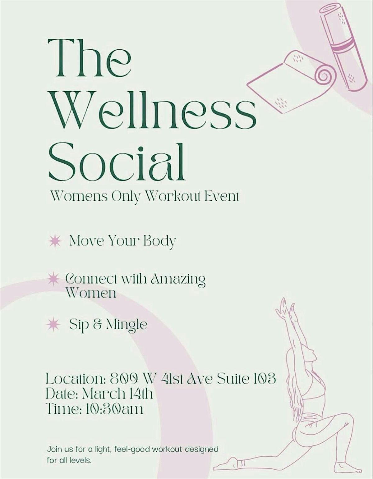Join us for The Wellness Social — a light, feel-good workout experience designed for all fitness levels. This event is about more than just movement — it’s about connection, community, and creating space for women to come together in a supportive and uplifting environment.
