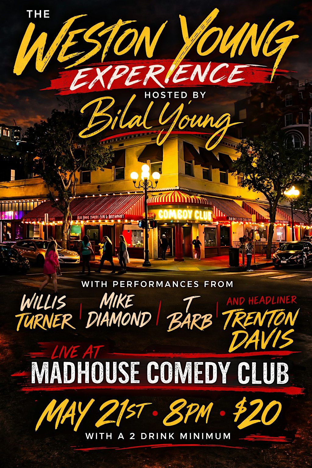 The Weston Young Experience is a interactive comedy show. With featuring comedians from BET, Netflix, HBO, and more. It's an EXPERIENCE!