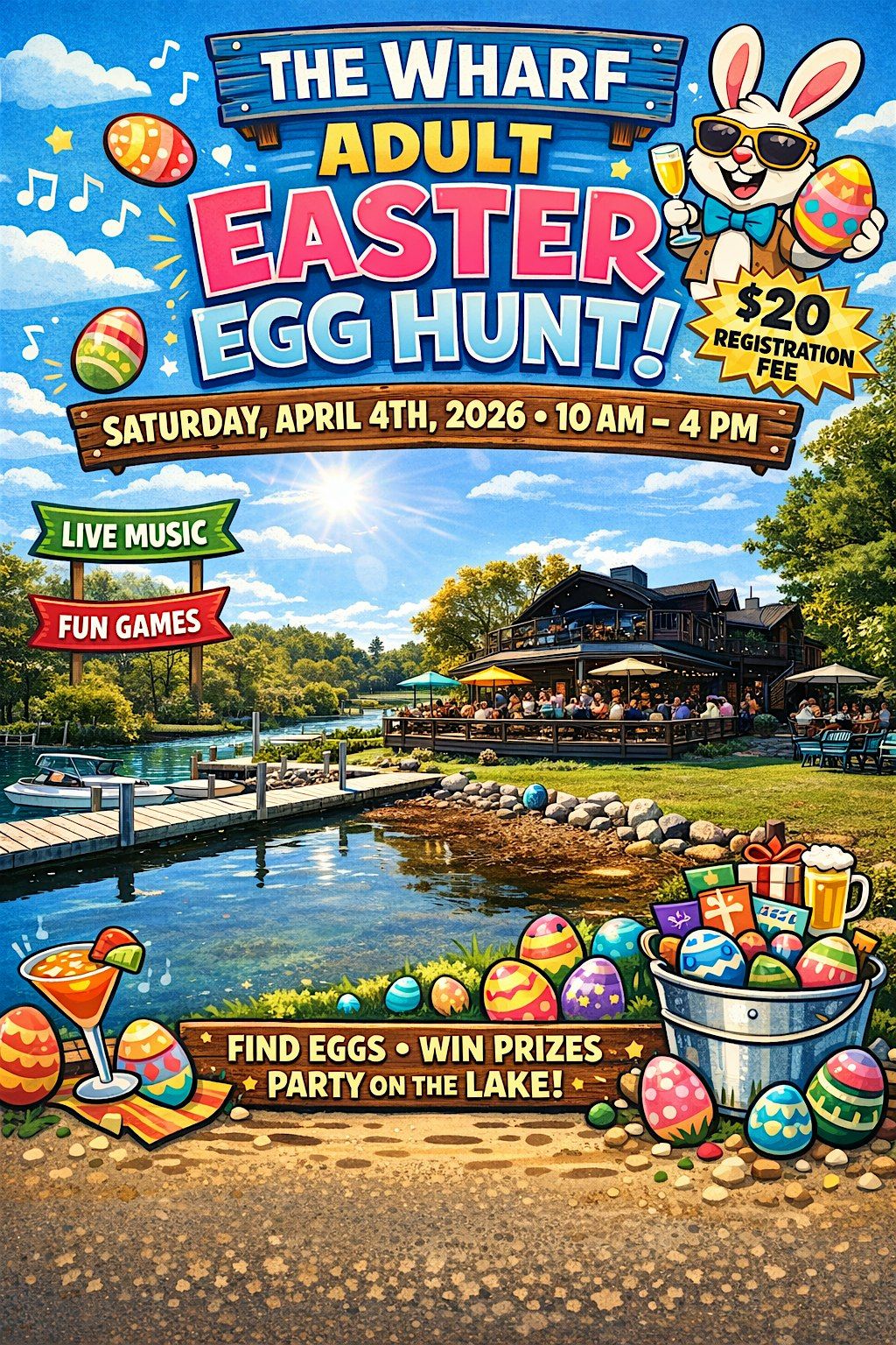 Join us at The Wharf on Saturday, April 4th, 2026 from 10am to 4pm for our 21+ Adult Easter Egg Hunt, where childhood nostalgia meets grown-up rewards.