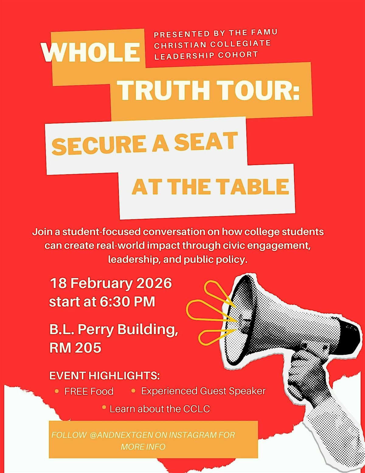 Join a dynamic, student-led conversation exploring how college students can drive real-world change through civic engagement, leadership, and public policy. This is more than a discussion — it is an opportunity to step into your influence, sharpen your voice, and discover how faith and public life intersect on your campus and beyond.