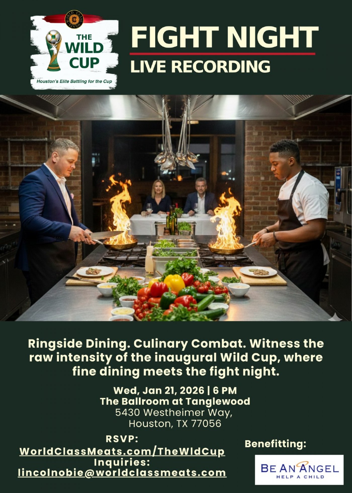 The Wild Cup is Houston’s most electrifying chef battle, where culinary skill meets fight-night energy. On January 21, 2026, top chefs go head-to-head, transforming wild and exotic game into elevated dishes under pressure, live on stage.