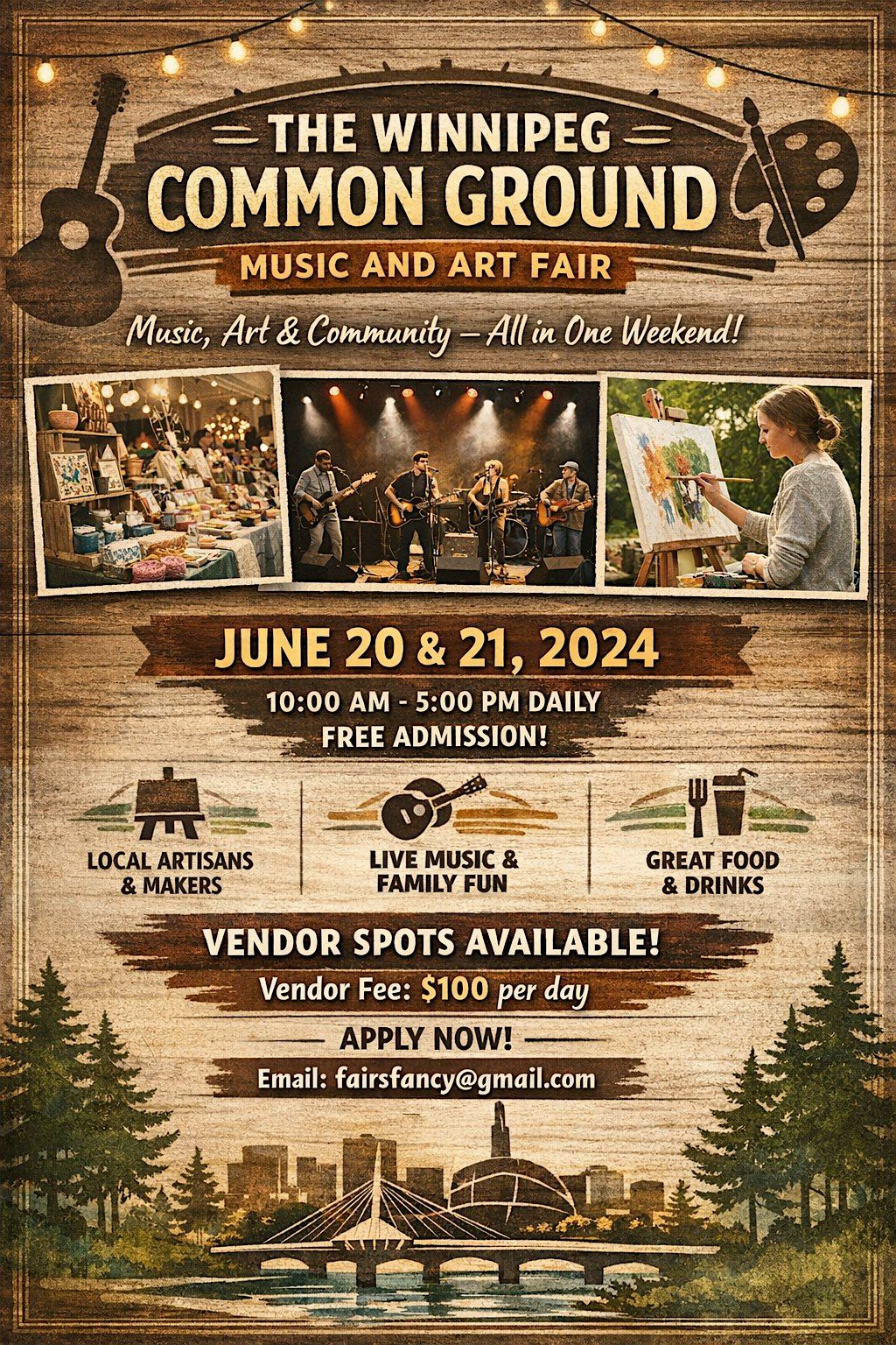 Join us for a vibrant and welcoming celebration of creativity, connection, and community at The Winnipeg Common Ground Music and Art Fair. This exciting multi-date event brings together talented local artists, skilled makers, passionate musicians, and small businesses from across Winnipeg and surrounding communities, creating a lively atmosphere where creativity and culture come together.