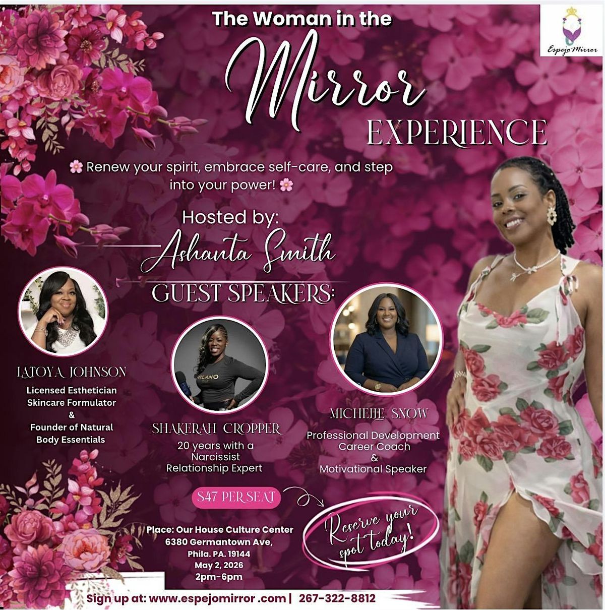 The Woman in the Mirror Experience is a luxury self-love and personal growth event designed to help you reconnect with who you truly are.
