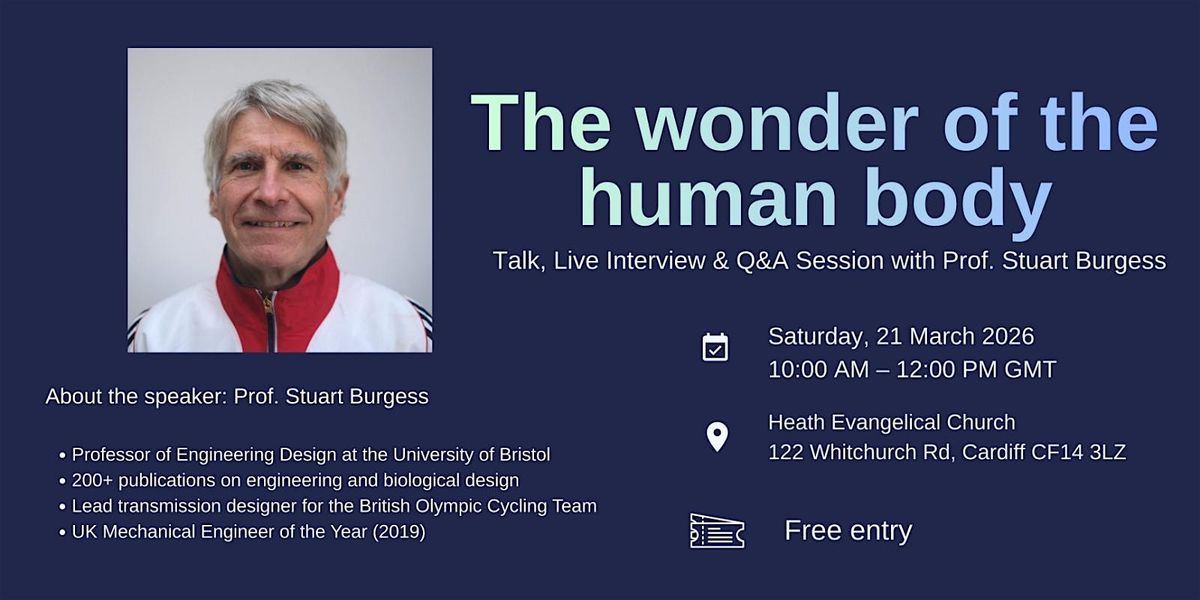 Join us in person for an exciting session where Prof. Stuart Burgess dives into the amazing secrets of the human body. Get ready to explore fascinating facts, ask questions, and enjoy a lively interview that reveals what makes the human body truly incredible! Secure a ticket fast and take this opportunity to learn about science, engineering, biology, university research, etc. from Dr Stuart Burgess - a professor, expert and engineer in Engineering Design!