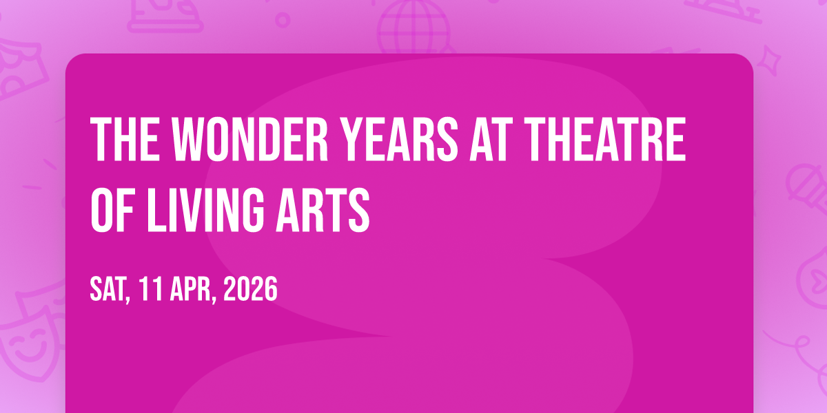✨ Discover the extraordinary at The Wonder Years at Theatre of Living Arts, where magic meets reality in ways you've never imagined! 🏛️ Set in Theatre of Living Arts nestled in bustling Philadelphia, PA, this event promises to be a landmark occasion. 📅 Taking place on April 11th, 2026 at 08:00 PM, it's going to create an atmosphere where every moment becomes a cherished memory. 🌟 Immerse yourself in an experience crafted with attention to every detail, designed to surprise and delight at every turn. They have worked tirelessly to ensure this event exceeds all expectations, bringing together elements of entertainment, innovation, and pure joy. 🎊 Don't miss your chance to be part of this remarkable journey!