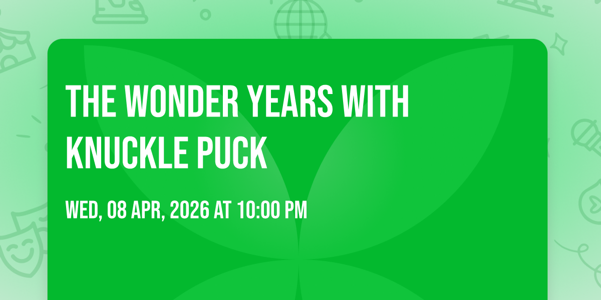 📍 Location: 42.3474, -71.0957🌟 Step into a world of wonder at The Wonder Years with Knuckle Puck, where extraordinary moments await! 🏛️ Located at Citizens House of Blues Boston in dynamic Boston, MA, this event will become the talk of the town. 📅 Join us on April 8th, 2026 at 10:00 PM for a celebration that defies the ordinary. ✨ This curated experience brings together the best of entertainment, culture, and community spirit. Every detail has been thoughtfully planned to ensure an unforgettable experience for all our guests. 🎯 Take advantage of this opportunity to be part of something special. 🎊 Early registration is recommended as space is limited!