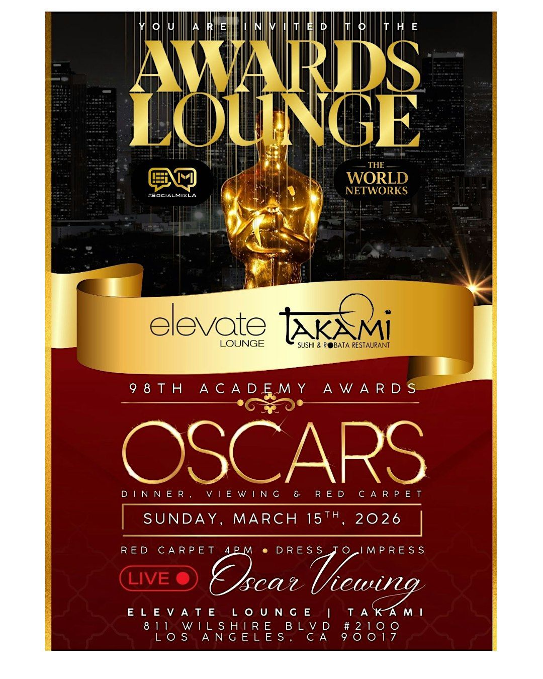 Join The World Networks + Social Mix LA for the AWARDS LOUNGE Oscar's Viewing!