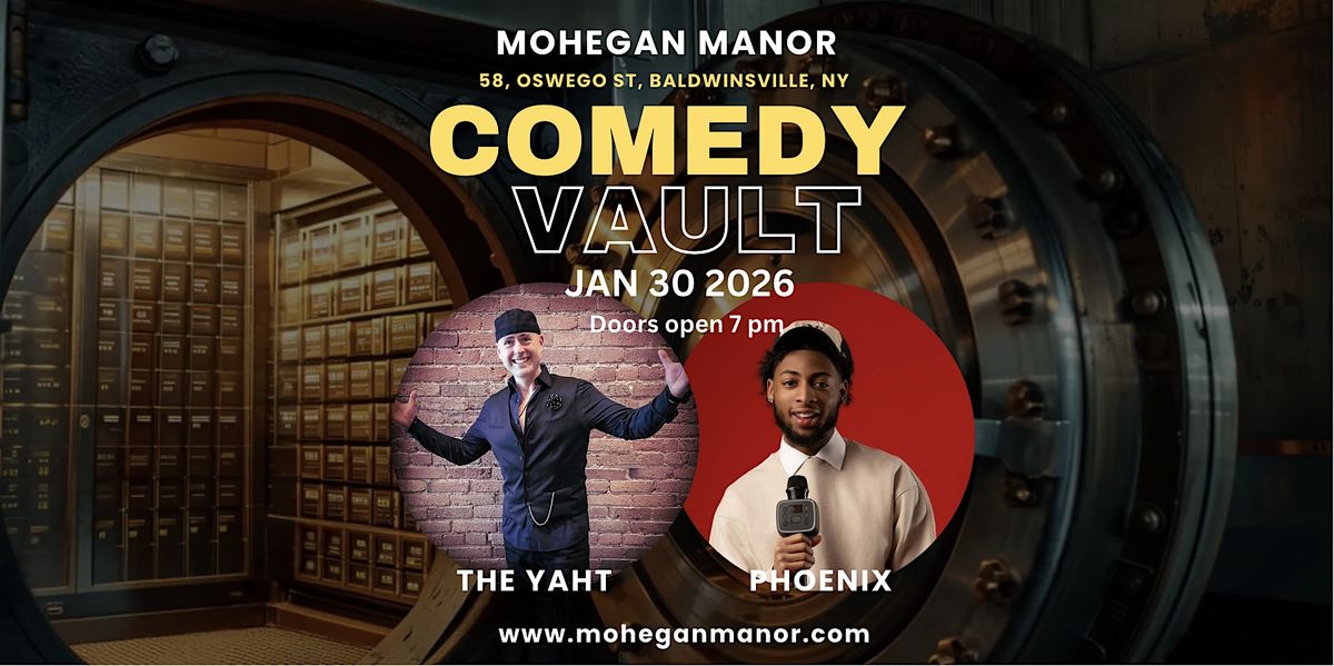 COMEDY VAULT at MOHEGAN MANOR hosts SEASON 3 with renown travelling comedians. Come laugh with us! Featured performers at comedy clubs are coming to Baldwinsville NY to check your sence of humor. Come early and enjoy teh music and our $12 LATE NIGHT LITE BITE menu and DRINK SPECIALS! FREE PARKING in the rear PRIVATE parking of MOHEGAN MANOR.