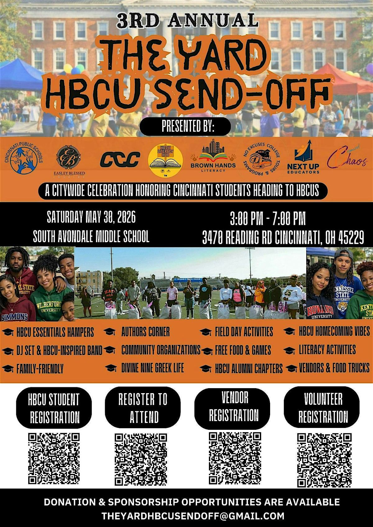 HBCU-bound students, vendors, volunteers, and attendees can register by scanning the QR codes on the flyer or clicking the links.