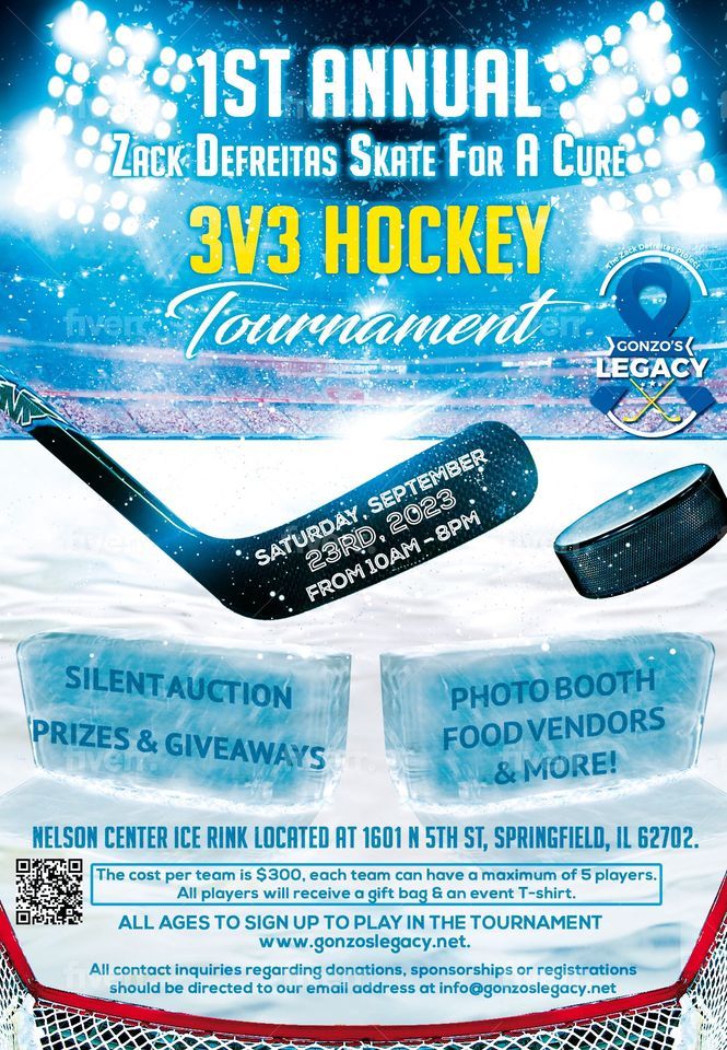 Zack Defreitas Skate For A Cure 3v3 Hockey Tournament promises to be an unforgettable day for both players & spectators alike! As an added perk, attendees have the opportunity to attend the Springfield Jr. Blues game in Rink 1 immediately after the tournament!