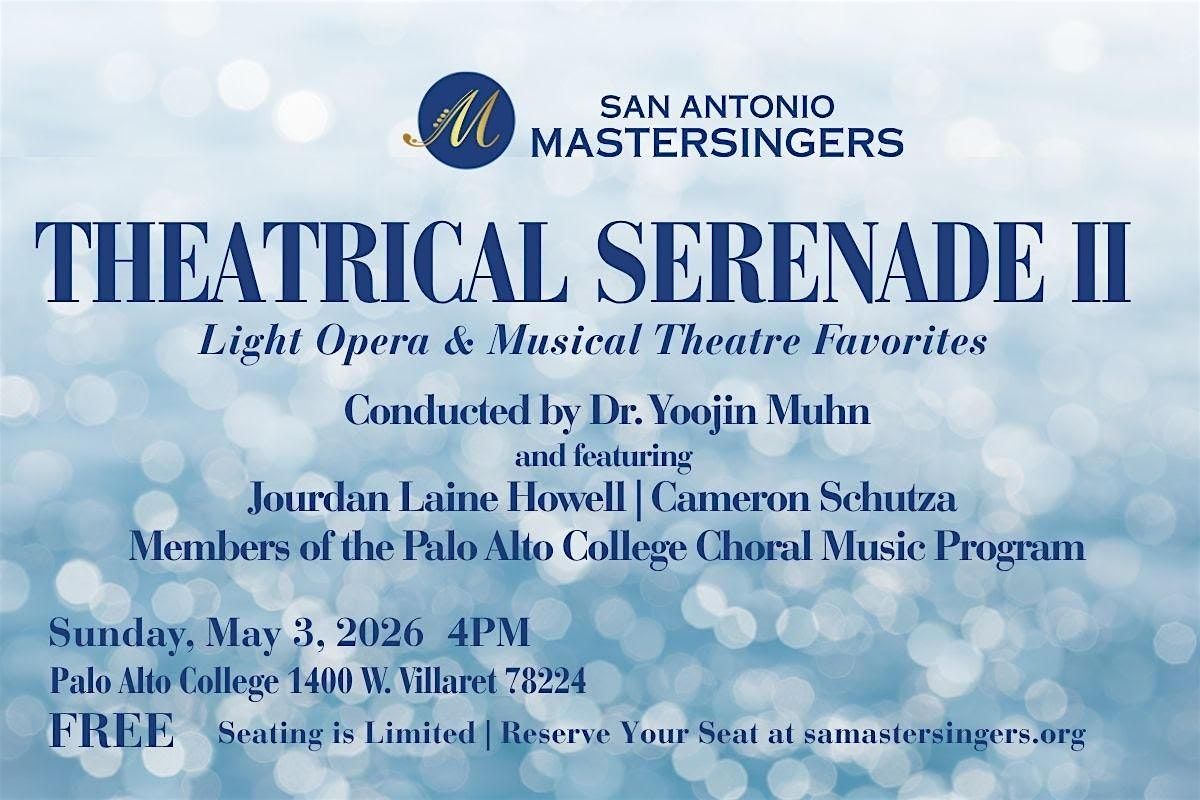 Join the San Antonio Mastersingers at 4pm on Sunday May 3 at the Palo Alto College Performing Arts Center for an unforgettable afternoon of music that blends the grandeur of opera with the irresistible charm of Broadway.