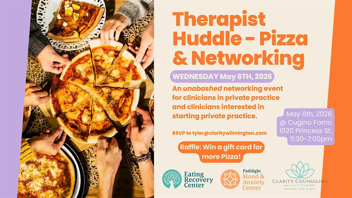 Please join us for another Therapist Huddle, an evening of idea sharing and unabashed networking! Our friends at Eating Recovery Center are sponsoring. Please meet us at Cugino Forno for FREE pizza and connection! And a fun raffle that may or may not involve more free pizza!