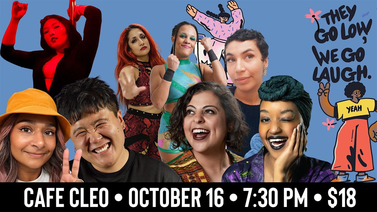 They Go Low, We Go Laugh is a variety show where folx of colour and marginalized identities may do stand-up, improv, storytelling, solo sketch, a poem, a monologue, a song, you name it! - all in the name of shining a little bit more light in this world.We invite all to celebrate our voices with us.