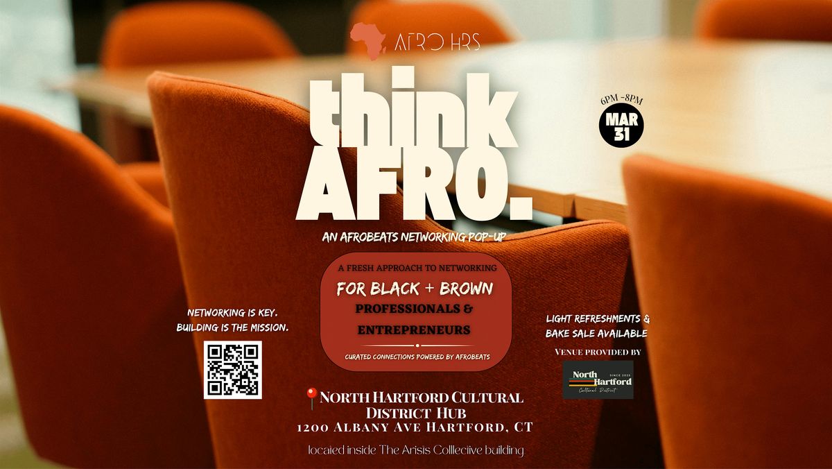 This edition of think AFRO is held at the NHCD Hub inside The Artists Collective building. NHCD is a central hub for community engagement, cultural convenings + programming, and creative collaboration in North Hartford.