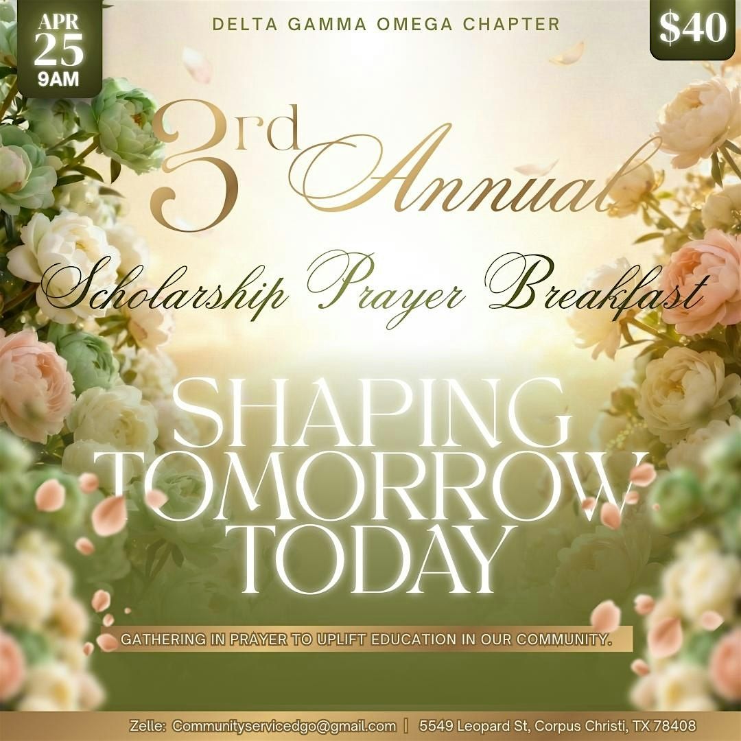 Join the Delta Gamma Omega Chapter of Alpha Kappa Alpha Sorority, Incorporated® for our 3rd Annual Scholarship Prayer Breakfast, a meaningful morning dedicated to uplifting education and supporting students in our community.