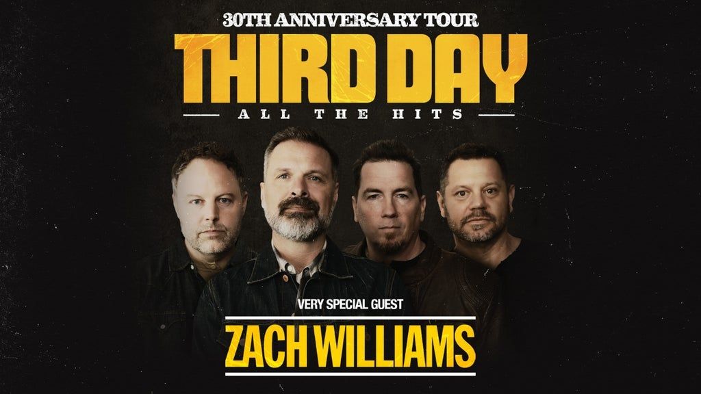 Experience the iconic band that shaped Christian music - Third Day - as they reunite for their 30th Anniversary Tour. For the first time in over a decade, original members Mac Powell, Mark Lee, David Carr, and Tai Anderson will hit the stage together for a limited number of live shows across the U.S. Celebrating three decades of unforgettable hits, this once-in-a-lifetime tour will feature the band's classic songs, pulling from their legendary catalog of chart-topping singles. Special guest Zach Williams will join the tour, adding his soulful hits to the night. DOORS: 5:30PM SHOW: 7PM *Lineup subject to change. *Discounts cannot be combined. *By attending this event, you agree to all uses of photo/video content collected. *Awakening Events / Awakening Foundation shows are required to follow local health and venue requirements. Changes in local health guidelines or venue policies are not grounds for a refund.