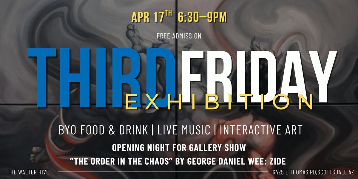 We are featuring the opening a new show, “The Order in the Chaos” ̶ by George Daniel Wee: Zide, and will be featuring live, local music in the Dome across the parking lot.