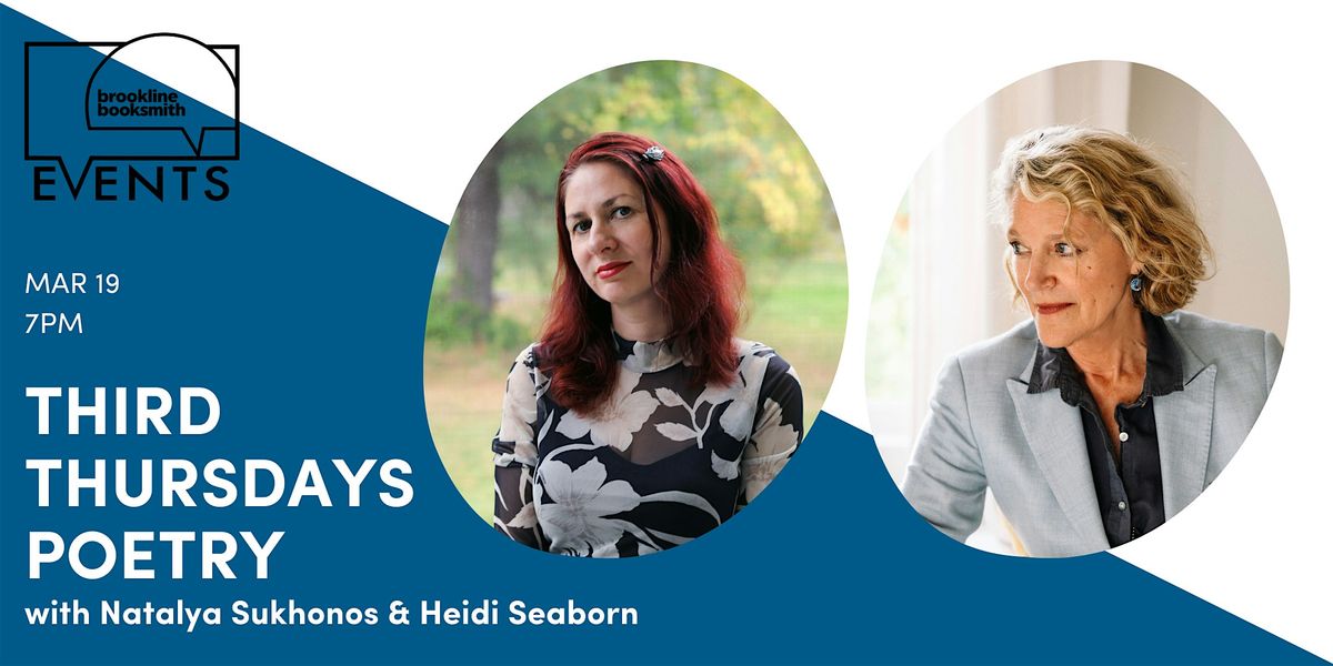 In person at Brookline Booksmith! Join us for an evening of poetry with Natalya Sukhonos & Heidi Seaborn.