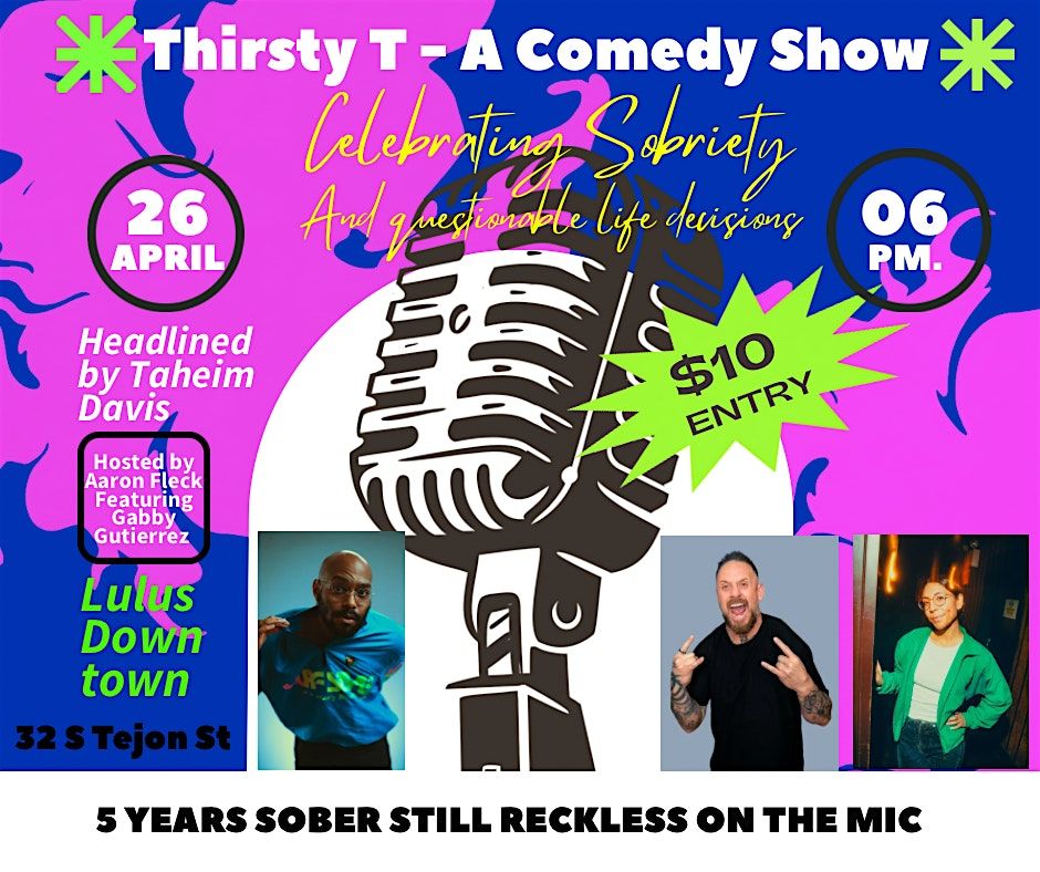 Thisrty T is a Night of Stand-up Comedy about life, growth, chaos and realizing you dont actually need alchohol to have a wild night... you just need the right Comedians.