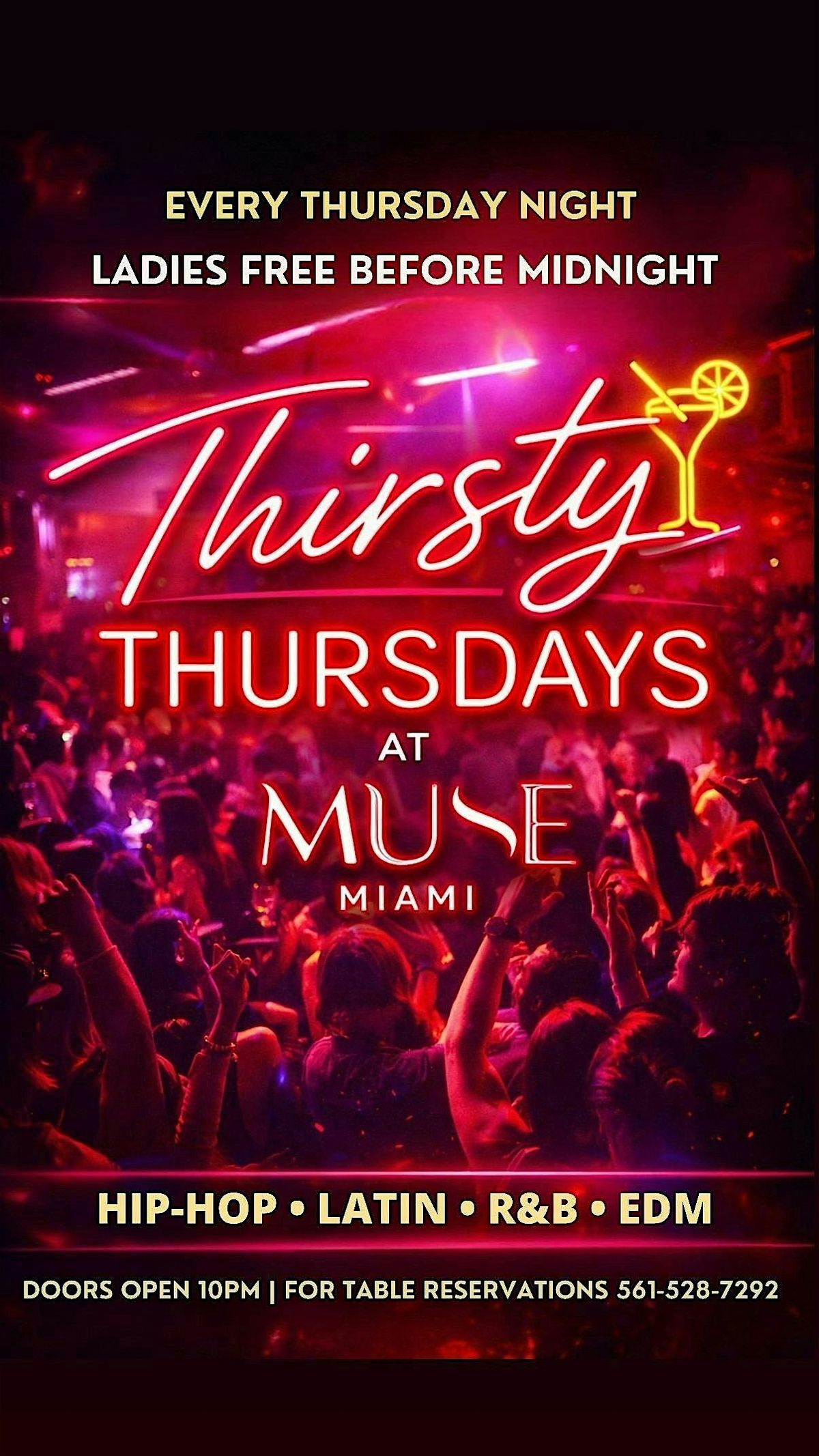Doors open at 10PM. Ladies free before midnight. Join us for Thirsty Thursdays at Muse Miami!About this Event
