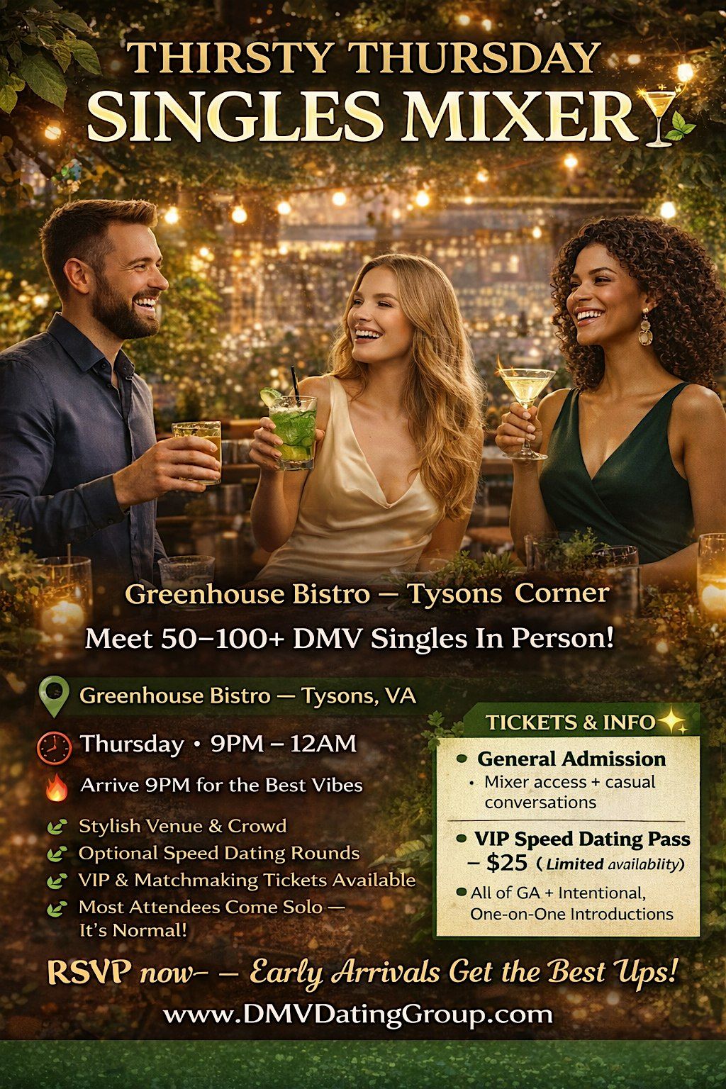 🍸 Thirsty Thursday Singles Mixer at Greenhouse Bistro – Tysons Corner 🌿✨