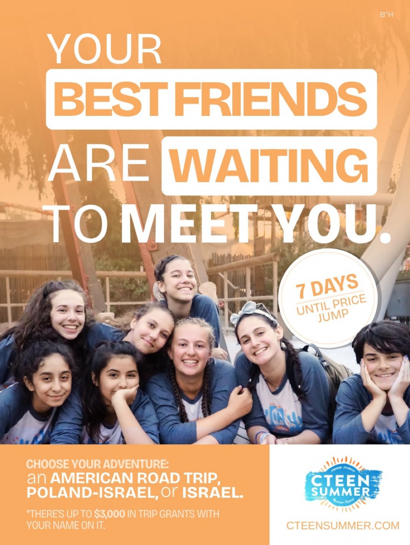 The one where you white water raft through Colorado, Hike Zion National Park, and surf in LA. Or… maybe this is the summer when you touch the Western Wall, ride a camel, volunteer with soldiers in Israel, and explore your homeland.
