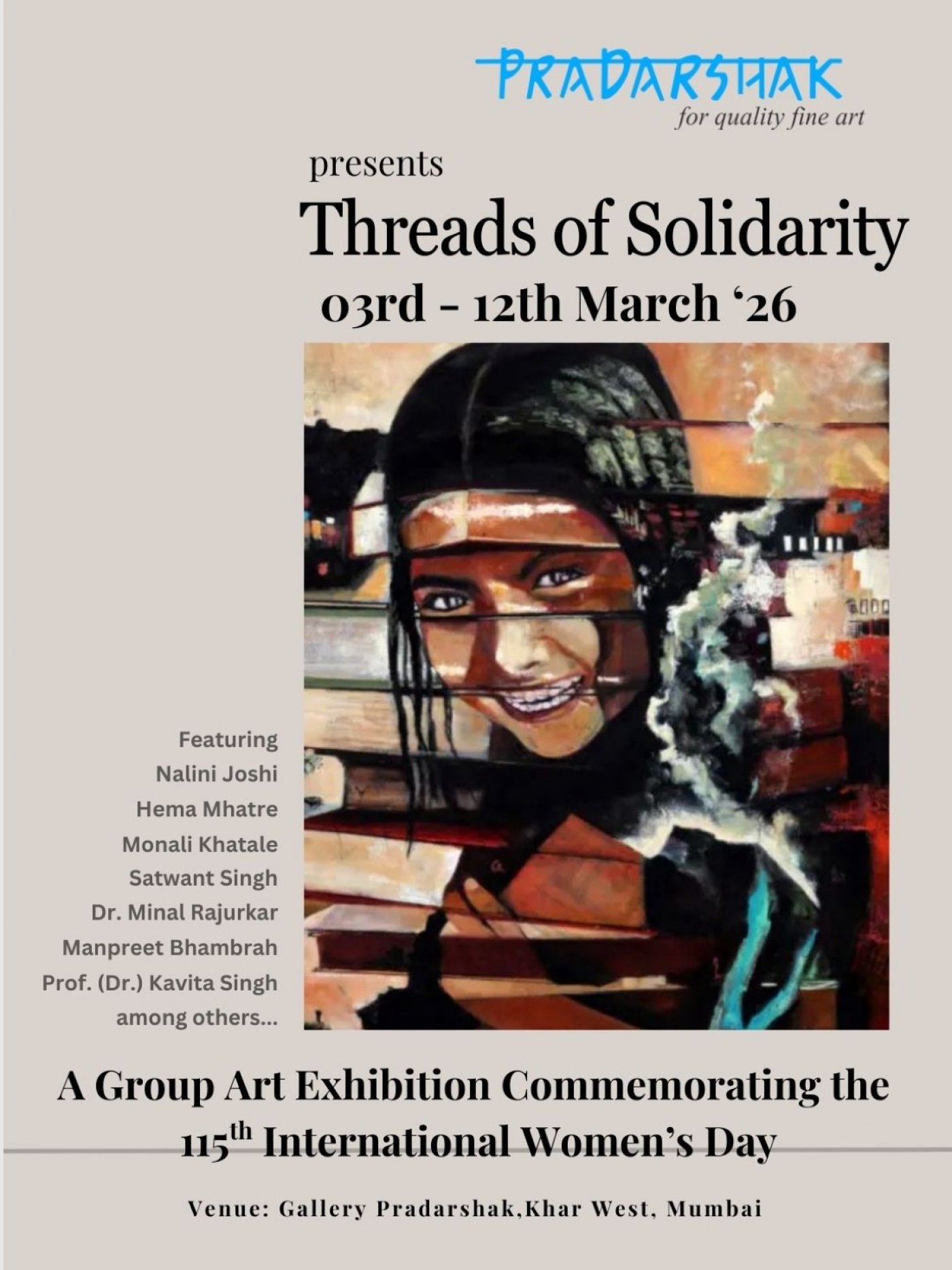Threads of Solidarity is a curated group art exhibition presented on the occasion of International Women’s Day, bringing together diverse artistic voices to celebrate the many layers of womanhood.