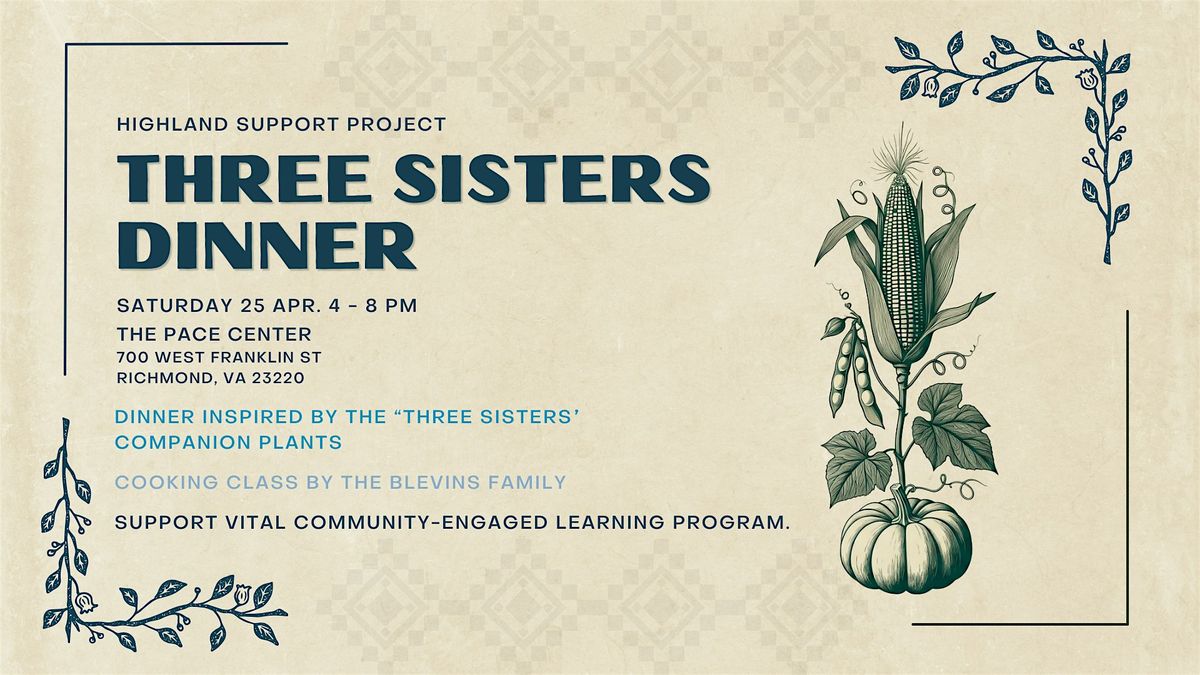 The Three Sisters Dinner draws its inspiration from the practice of planting corn, beans, and squash together—a tradition deeply rooted in the fields of the Guatemalan Highlands. These plants, known as the “Three Sisters,” thrive through mutual support: corn provides a structure for beans to climb, beans enrich the soil, and squash shields the ground. This approach is a living metaphor for what we hope to create—an ecosystem where diverse strengths come together to uplift the whole community. Represented by the symbol S³, the dinner embodies Sisters, Sustainability, and Synergy, affirming our commitment to collective empowerment, care for the Earth, and transformative cross-cultural connection.