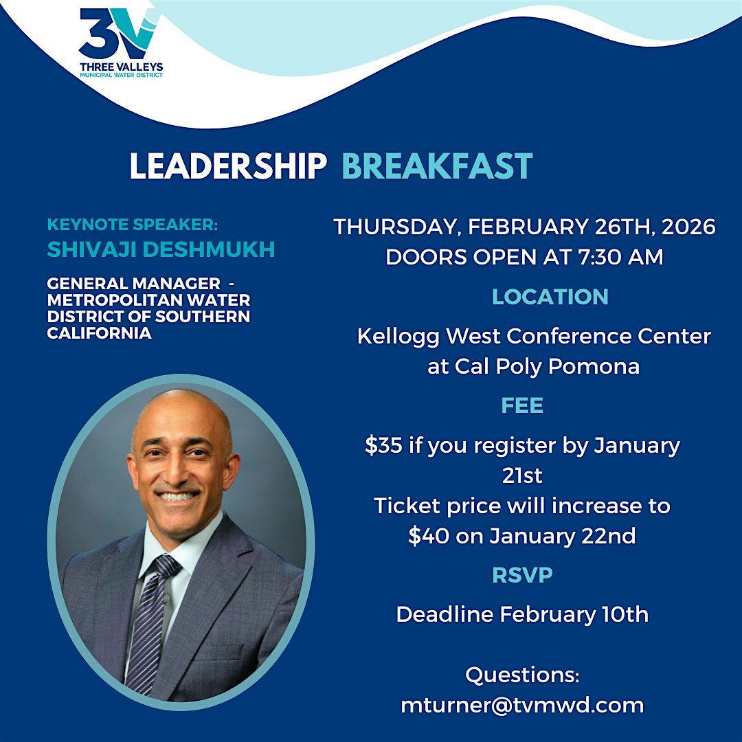Info: Shivaji Deshmukh joined the Metropolitan Water District of Southern California on November 3, 2025, as general manager-designate to ensure a seamless leadership transition. As of January 1, 2026 he is now the General Manager. Deshmukh comes to the district from the Inland Empire Utilities Agency, one of Metropolitan’s 26 member agencies, where he has been general manager since 2019. Previously, he served as assistant general manager at West Basin Municipal Water District and as program manager at Orange County Water District, where he oversaw the design, construction, and operation of one of the state's first and largest recycled water projects, the Groundwater Replenishment System in Orange County. Deshmukh is president-elect of the WateReuse California Board of Trustees and serves on the US Water Alliance Board of Directors. Deshmukh holds bachelor’s and master’s degrees in civil engineering from UCLA.