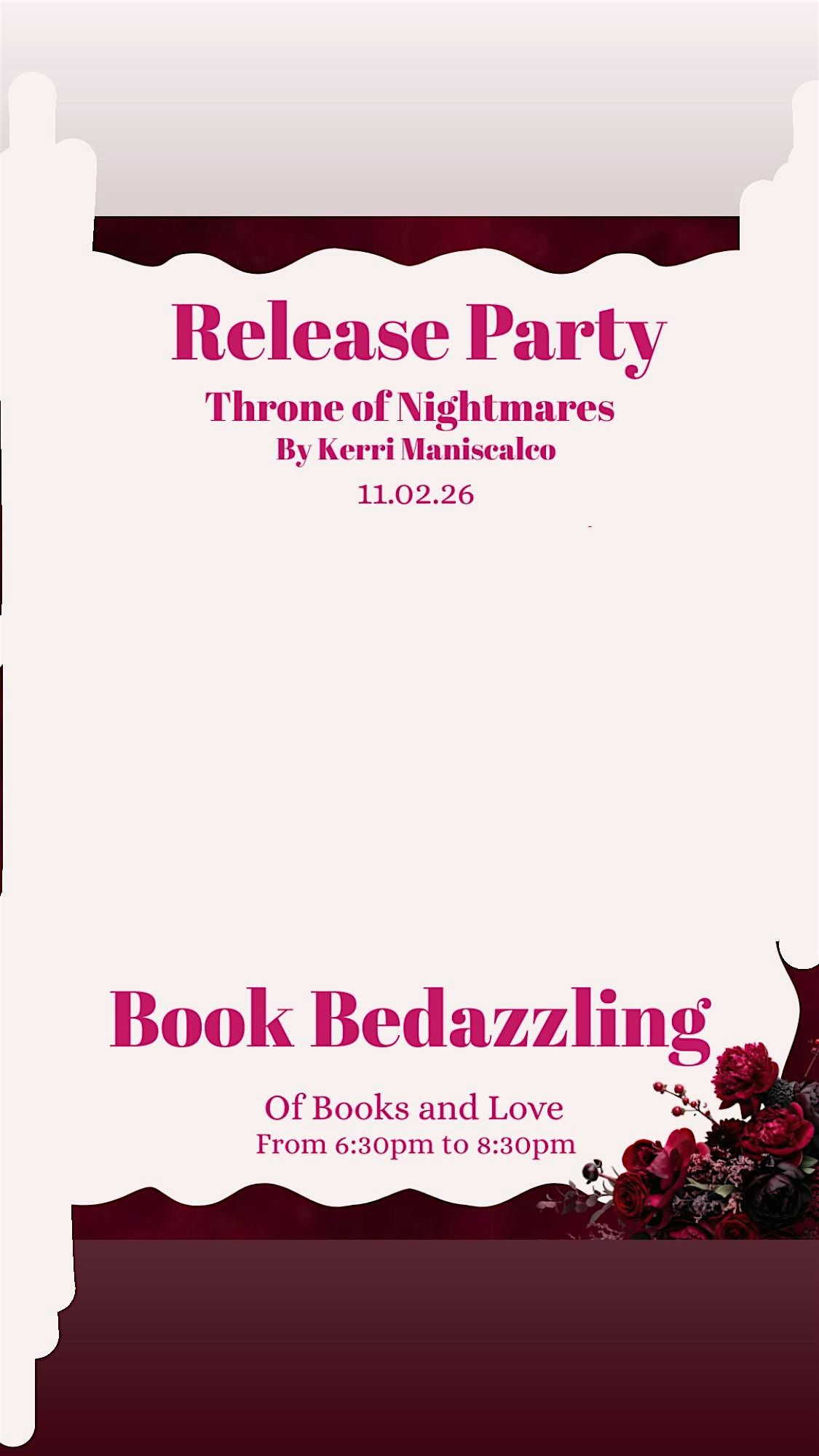 We’re so excited to announce that we’ll be hosting the release party for Throne of Nightmares by the amazing @kerrimaniscalco ! 🖤📚