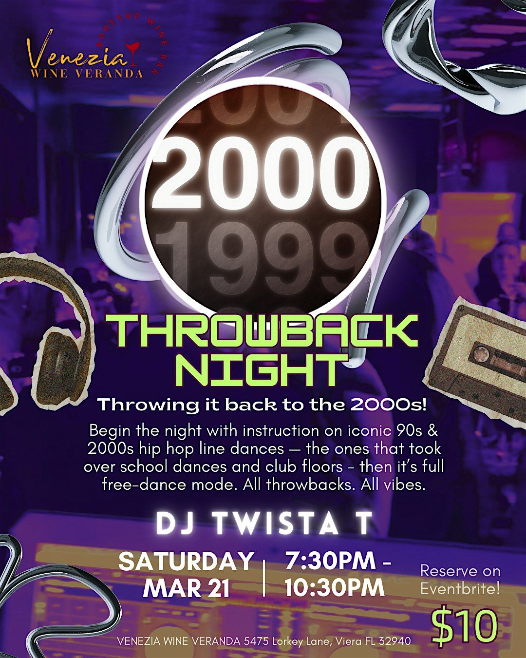Join us for Throwback Night featuring DJ Twista T spinning nothing but the best of the 90s and early 2000s — the songs you still know every word to, the beats that defined middle school dances, and the anthems that still hit every time.