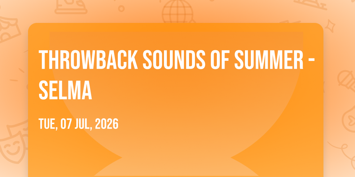 📍 Location: 35.7871, -78.7803✨ Enter a world of endless possibilities at Throwback Sounds of Summer - Selma, where every moment tells a story! 🏛️ The stunning The Cary Theater in vibrant Cary, NC transforms into a realm of wonder on July 25th, 2026 at 04:45 PM. 🌟 They have crafted an experience that goes beyond the ordinary, combining elements of surprise, delight, and pure entertainment. Every detail has been thoughtfully considered to ensure your journey with us is nothing short of extraordinary. 🎯 Join fellow adventure seekers and memory makers in this celebration of imagination and innovation. 🎊 Reserve your spot today and be part of something truly special!