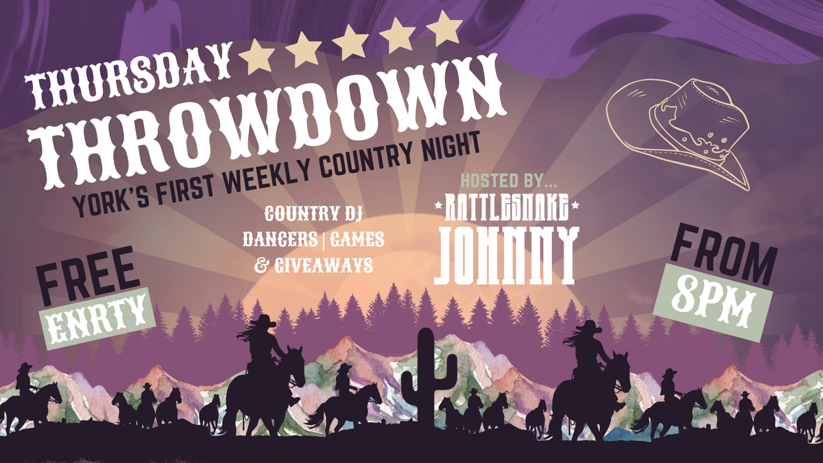 Get ready for a true honky-tonk experience at our Throwdown Thursday's with DJ Rattlesnake Johnny.Dust off your boots, throw on your favorite hat, and join us for a honky-tonk night you won’t forget!
