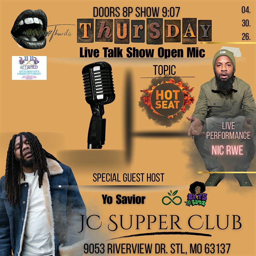 Join us in person for the coolest Thursday Live Talk Show Open Mic around! Whether you want to share your story, crack some jokes, or just kick back and enjoy great vibes, this is the spot. Bring your energy and your voice — the mic is open and the stage is waiting.