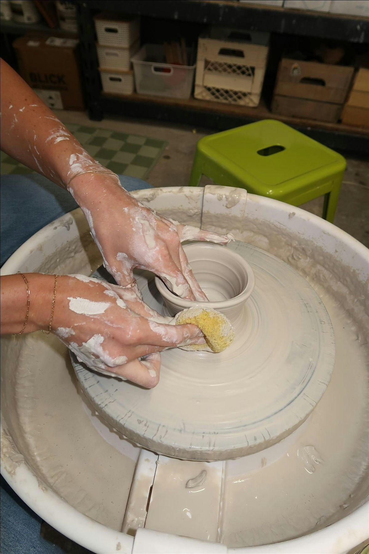 Get your hands muddy and learn the basics of the pottery wheel in this beginner-friendly 4-week course! You’ll practice centering, pulling, and shaping clay on the wheel while creating functional + fun pieces to take home.