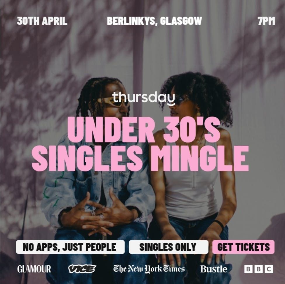 Just a bar, everyone single. Because the world in 2026 is all about meeting IRL, not on dating apps!Hello Glasgow!We're taking over the beautiful Berlinkys again in Glasgow! This stunning bar is the perfect place to have a cocktail, listen to live music and get to know your fellow single glaswegians in their stunning upstairs bar!