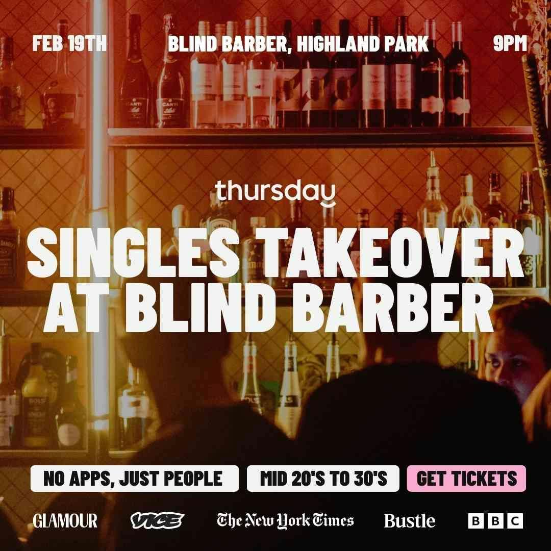 Thursday is bringing the late-night romance to Blind Barber in Highland Park for a special after-dark singles event from 9 PM to midnight, because some of us do our best flirting under dim lights and a little liquid courage. 🍸✨