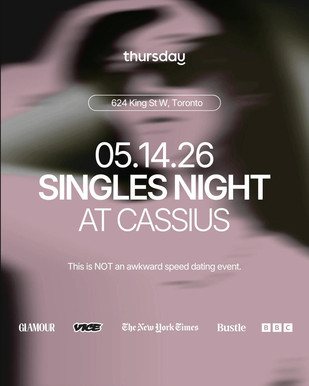 đ¨ When this event sells out, due to overwhelming demand, more tickets will be released at 8pm on a one-in-one-out basis â ď¸Weâre heading to a brand-new Thursday night destination: Cassius on King St. Weâre filling the room with singles from across the city for a night of mixing, mingling, and romance in one of Torontoâs newest and most sophisticated spots. It's a fresh vibe for a fresh season! THE VENUE: https://cassiusonking.com/
