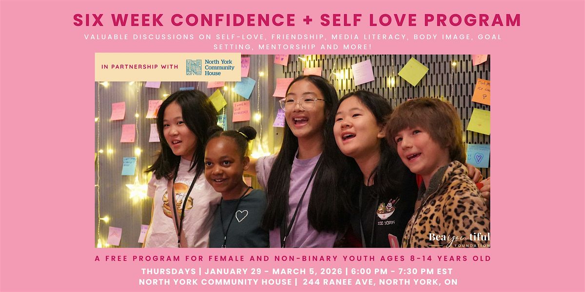 The is so excited to be hosting their newly revised Confidence Building Program at North York Community House and welcomes girls + non-binary youth ages 8-14 to join their interactive six-week confidence and self-esteem building program FOR FREE! Work with empowering female leaders and mentors as we cover various topics including confidence building, self esteem, positive body image, media literacy, friendship, goal-setting and MORE in a fun group setting! Whether you come with a friend or leave making new ones, we promise this is a girls group you will want to be a part of.