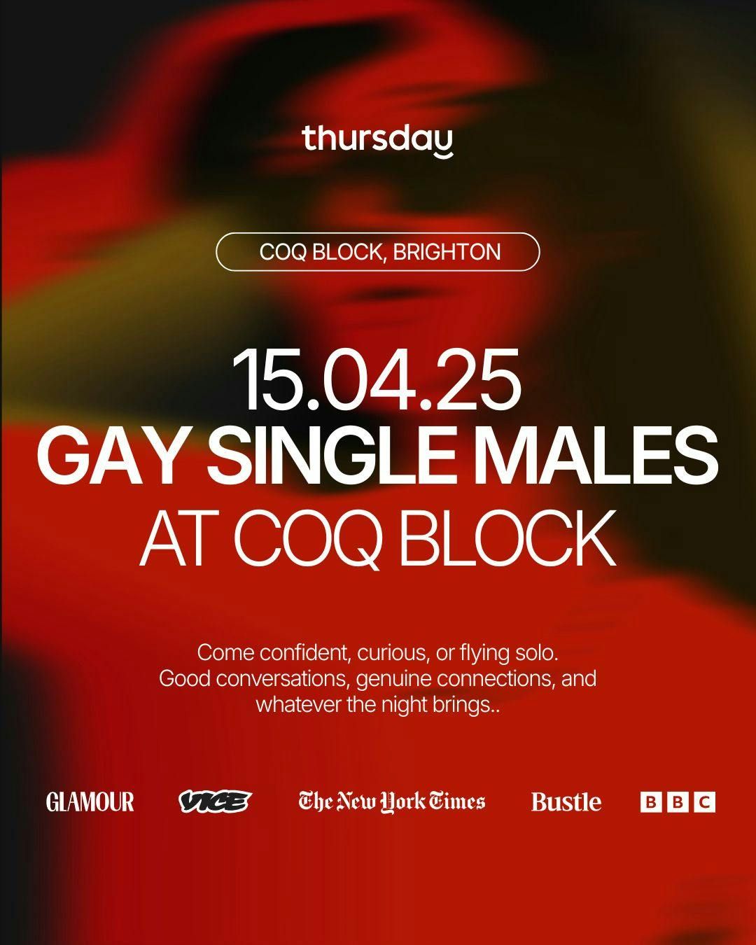 Join us at Coq Block in Kemptown for a Gay Menâs Singles Night thatâs all about good vibes, easy chats, and meeting people naturally. No speed dating, no forced flirting.