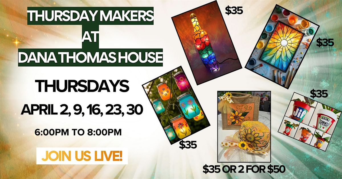 Step inside a stunning Frank Lloyd Wright masterpiece and spend the evening creating something uniquely yours. Each session features a different hands-on project—painted hats, storybook stacks, glowing lanterns, resin art, doormats, and more.